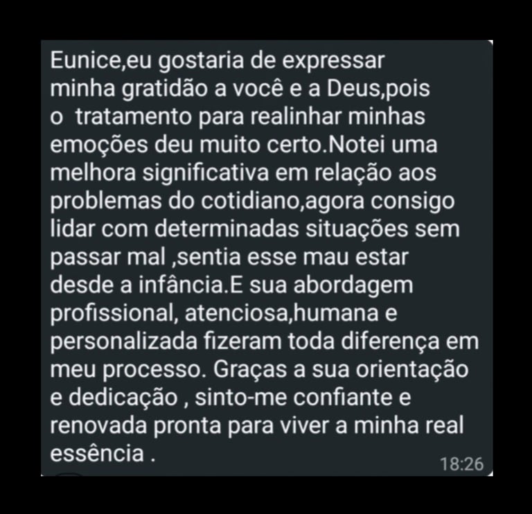 Há relatos de sensação de leveza interna e mente clara, já na primeira intervenção.
